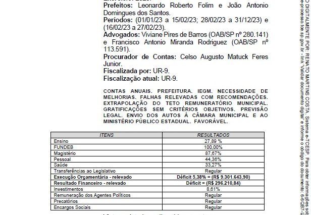 PARECER PRÉVIO ÀS CONTAS DO EXECUTIVO – 2023.
